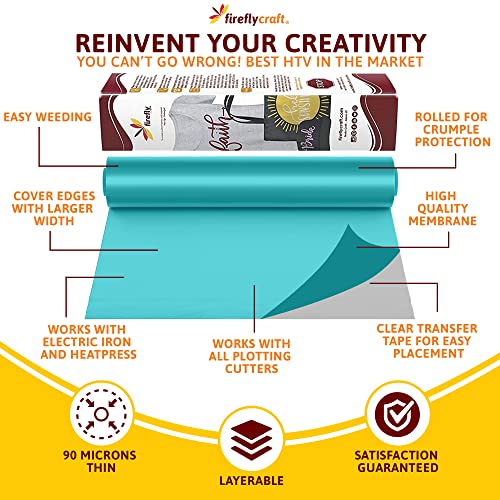 Firefly Craft Heat Transfer Vinyl Sheets - Teal HTV - Iron On Vinyl for Cricut, HTV Vinyl Sheets, Vinyl Iron On, Easy Cut & Weed, Compatible with Cricut & Silhouette Cameo - 1 Sheet 12" x 20"