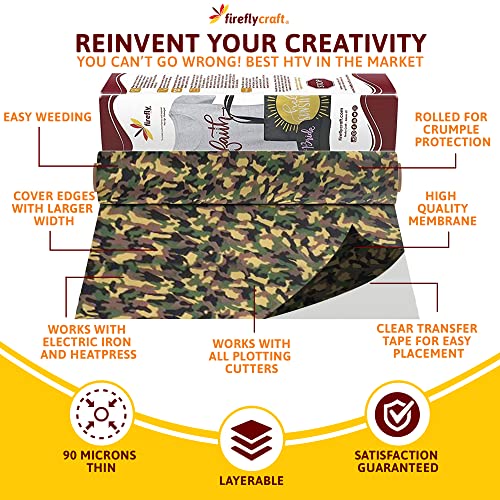 Firefly Craft Pattern Heat Transfer Vinyl Sheets - Pink Camo HTV - Iron On Vinyl for Cricut, HTV Vinyl Sheets, Vinyl Iron On, Easy Cut & Weed, for Cricut & Silhouette Cameo - 1 Sheet 12"x20"